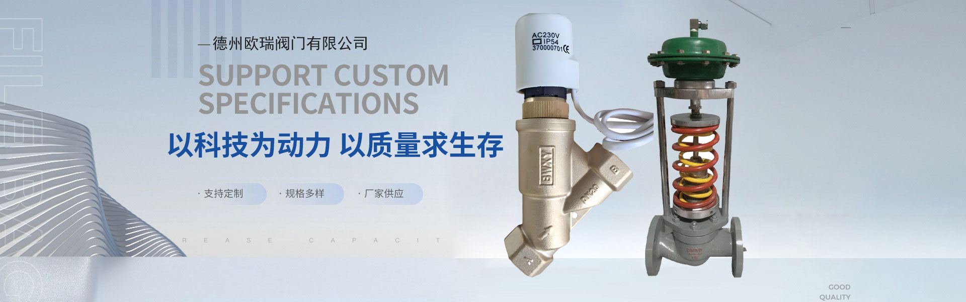 公司以科技為動(dòng)力,自主研發(fā)生產(chǎn)各種電動(dòng)閥系列產(chǎn)品,自力式產(chǎn)品系列,氣動(dòng)閥系列;并與西門(mén)子、丹佛斯、霍尼韋爾等一線品牌為戰(zhàn)略合作伙伴